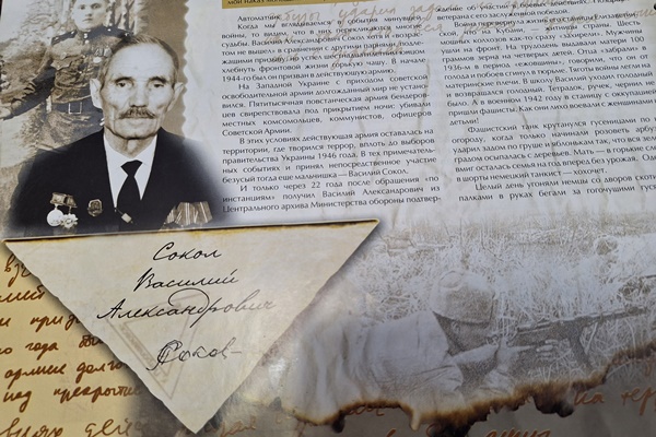 Георгий Иванович Щигровский родился 6 мая 1915 года в городе Киеве. Свою первую войну он встретил выпускником Киевского артиллерийского училища. Всего прошёл три войны: участвовал в событиях на озере Хасан и реке Халхингол, воевал на полях сражений Финской и Великой Отечественной. Командовал батареей на Пулковских высотах. Участвовал в прорыве блокады Ленинграда. Освобождал Кёнигсберг. После окончания Великой Отечественной войны преподавал в ленинградском артиллерийском училище. Закончил службу в звании полковника. Имеет боевые награды: два ордена Боевого Красного Знамени, два ордена Красной Звезды, два ордена Отечественной войны II степени, орден Отечественной войны I степени. Также награжден медалями «За боевые заслуги», «За оборону Ленинграда» и «За победу над Германией». Интересный случай: орден Отечественной войны I степени спас Георгию Ивановичу жизнь. Награду вручали в июле 1943 года на передовой. Он стоял в строю уже с орденом на груди. Вблизи окопов разорвался вражеский снаряд. Осколок попал в орден, повредил его, но сохранил жизнь. Этим орденом семья очень дорожит. Иначе бы не было троих детей, восьми внуков, шести правнуков, одного праправнука…. Георгий Иванович юыл душой любой компании. Ежегодно ездил на встречи с боевыми товарищами. До последних дней жизни работал на станции юных техников, вёл кружок судомоделистов. Гости библиотеки читали открытки, присланные с фронта жене и дочери. 6 мая Георгию Ивановичу исполнилось бы 100 лет. Людмила Васильевна Мирзоян вспоминала своего папу – Василия Александровича Сокола.