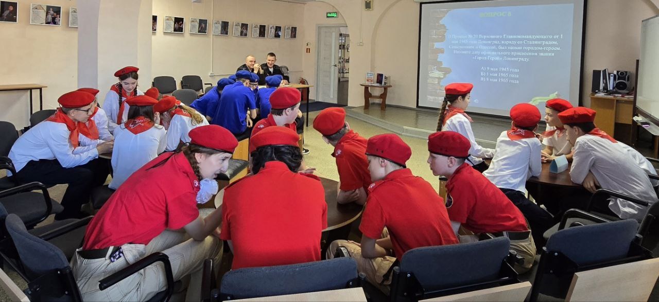 23 января в Центральной городской библиотеке состоялся исторический квиз, посвящённый полному освобождению Ленинграда от фашистской блокады. 872 дня город находился во вражеском кольце – он не только жил, он давал фронту танки и самолёты. 27 января 1944 года блокада была прорана! В мероприятии приняли участие 4 юнармейских команды школ города Вилючинска. В жюри были приглашены военнослужащие одной из воинских частей. Библиотекарь Тимченко Лариса Григорьевна рассказала о том, как город выжил вопреки суровым условиям, о вилючинцах, переживших блокаду. В ходе квиза ребята вспоминали о предметах, символизирующих блокадный Ленинград, услышали 7 симфонию Дмитрия Шостаковича и звук метронома, который напоминал биение сердца, стихи Ольги Берггольц, узнали, сколько раз пытались советские войска прорвать блокаду, о героической защите города. Больше всего правильных ответов было у команды «Звезда» из школы №1 – они и заняли первое место в состязании. Поздравляем победителей! Благодарим руководителей, готовивших детей к викторине. В библиотеках города есть много книг, рассказывающих об этой странице Великой Отечественной войны. Тимченко Лариса Григорьевна, | |