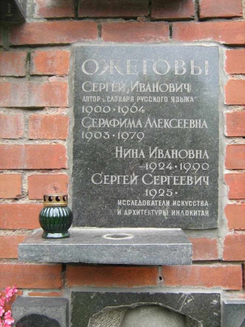 Захоронение С.И. Ожегова и его супруги на Новодевичьем кладбище в Москве.