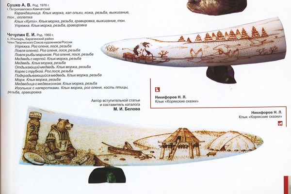 Что такое творчество? Это сокровищница души человека, удивительная область, где сплетаются понятия красоты и многогранности. В каждом стежке, в каждом изгибе материала мастера-ремесленники раскрывают перед нами целый спектр чувств и эмоций, языковую палитру, самобытные обычаи народов Севера. Словно окно, распахнутое в историю, оно позволяет ощутить колорит коренных жителей Камчатки. Изделия из меха и кожи – национальная одежда, сумки, украшения, а также настенные ковры и панно, поражающие самобытной эстетикой. Вышивка и вязание – кладезь орнаментальных решений и технических приёмов, передающихся из поколения в поколение. Резьба по кости и дереву – миниатюрные скульптуры и декоративные предметы, где каждая линия дышит мастерством резчика. Плетение из лозы – от изящных панно и напольных ваз до функциональной мебели и посуды, демонстрирующих безграничность фантазии авторов. Обработка бересты – бытовые предметы, наполненные теплом природного материала: корзины, шкатулки, хлебницы и детские игрушки. Керамика – обширное поле творчества, где соседствуют утилитарная посуда, украшения и сакральные фигурки.