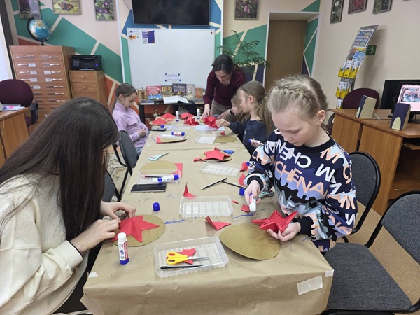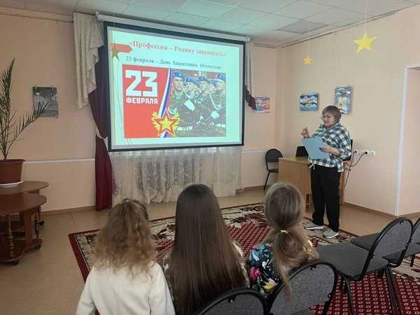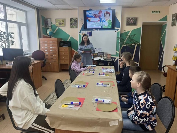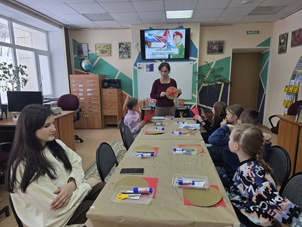 А после увлекательной лекции ребята проверили свои знания в весёлой викторине «Гадание по звёздам» — угадывали, какие погоны соответствуют тем или иным воинским званиям. Юлия Новикова пригласила всех на творческий час. Под её чутким руководством каждый участник создал собственную объёмную звезду – яркую, праздничную и по‑настоящему особенную. Юные мастера проявили фантазию и мастерство: получились удивительные поделки, которые станут отличным подарком к 23 Февраля или памятным сувениром! Ольга Николаевна Кравцова провела увлекательное мероприятие Патриотический час «Профессия – Родину защищать» Юные гости узнали:
