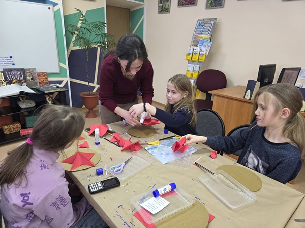 В библиотеке‑филиале № 1 в преддверии праздника 23 Февраля приготовили для ребят цикл познавательных и творческих программ — чтобы познакомиться с историей военных традиций и проявить свою фантазию! Библиотекарь Вероника Лагода провела познавательную программу «Звёздное путешествие». Юные гости узнали много интересного: