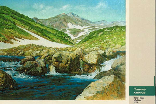С того времени он активно занимается живописью, демонстрируя талант в книжной графике, владеет техниками акварели, масляной и темперной живописи. Его многогранные интересы проявляются в разнообразии жанров и видов изобразительного искусства. Особое место в его творчестве занимает иконопись. Им созданы уникальные иконы, такие как «Сергий Радонежский», «Троица», «Богоматерь с младенцем», «Георгий Победоносец», которые он безвозмездно передал Камчатской епархии. Говоров В.М. активно участвует в культурной жизни Дальневосточного региона. Его творчество характеризуется широким спектром тем и художественных решений. От многоплановых и детализированных произведений до полных лиризма и света. Все они пронизаны главной идеей – очарованием родной земли. Художник видит в камчатской природе «восьмое чудо света», и она служит основой его вдохновения. Насыщенные эмоциями, экспрессивные картины Говорова переносят зрителя в его образный мир – символическое пространство, где человек существует в согласии с окружающим миром. Говоров, В. М. Живопись, графика : [альбом репродукций] / Вячеслав Говоров ; [авторская вступительная статья С. Степакова]. – Петропавловск-Камчатский : Новая книга, 2005. – 57, [3] с. : цв. ил. ; 20 см. – (Библиотека «Новой книги»).