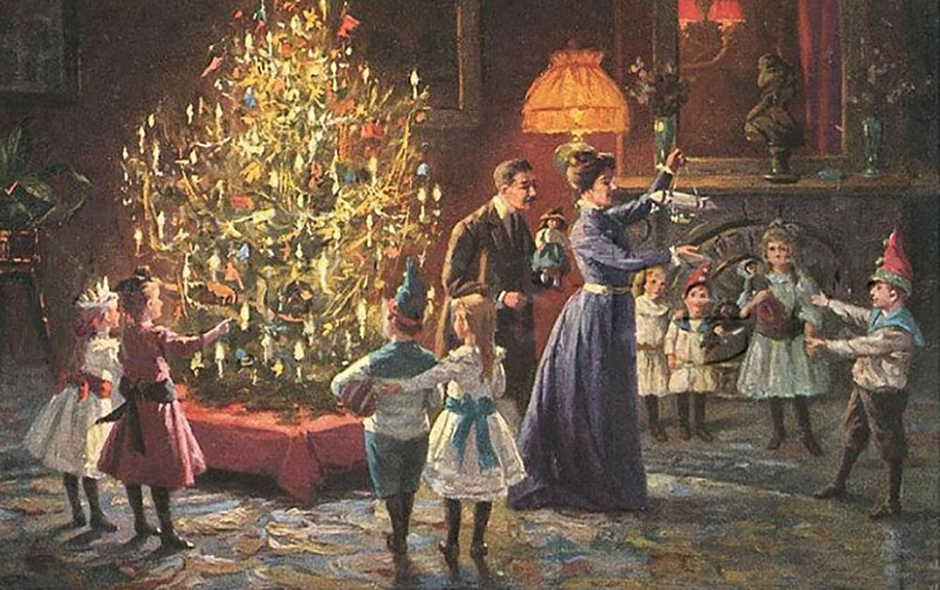 - С середины 1840-х годов обычай устанавливать рождественскую ёлку и украшать её стал широко распространенным. Дерево украшали не только игрушками, но и конфетами, золочеными яблоками, орехами, в состоятельных домах нередко использовали настоящие драгоценности и дорогие ткани.