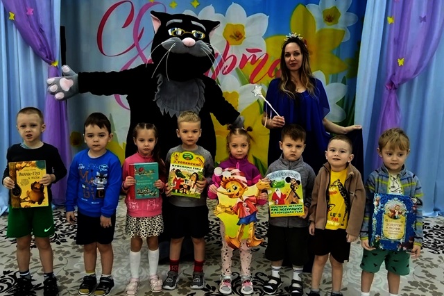 Малышей детского сада № 8 весёлая атмосфера захватила с первых минут встречи. В игре «Пчёлы в улье» ребята старательно «заселяли» пчёлок в домики, помогая Винни-Пуху запастись мёдом. А затем, по взмаху волшебной палочки феи, зазвучала весёлая музыка и закружилась игра «Горячий апельсин». Ребята передавали друг другу яркий апельсин, стараясь не уронить его. В группе раздавался звонкий смех: как только музыка внезапно затихала, тот, у кого в руках оказывался апельсин, с замиранием сердца заглядывал в волшебную коробку, а там его ждал подарок-шарик! И каждый ребёнок получил свой сюрприз, как в доброй повести Эдуарда Успенского, – маленький символ большого праздника, который останется в памяти надолго. В конце встречи фея пообещала, что книги-именинники будут ждать ребят в библиотеке, а кот-учёный подмигнул: «Приходите – у меня ещё много загадок!».