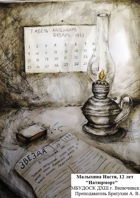 До 30 января в библиотеке-филиале № 3 проходит выставка работ учащихся детской художественной школы, посвященная блокаде Ленинграда. Работы юных художников передают не только страдания и мужество жителей осажденного города, но и их надежду на победу. Через яркие образы и глубокие символы дети рассказывают о том, как ленинградцы, несмотря на голод, холод и постоянные обстрелы, продолжали жить, работать и бороться. Экспозиция предоставляет зрителям возможность не только взглянуть на историю глазами детей, но и почувствовать, как эти события отзываются в наших сердцах сегодня. Блокада Ленинграда – одна из самых трагических и одновременно героических страниц в истории Великой Отечественной войны. Фашисты хотели стереть город с лица земли, разрушив его пригороды и уничтожив бесценные сокровища искусства. Петродворец (Петергоф), Пушкин, Павловск и другие культурные центры были разграблены и разрушены. Однако врагу не удалось сломить дух ленинградцев. Почти три года защитники города сдерживали бешеный натиск врага. Окруженный со всех сторон, отрезанный от страны, Ленинград подвергался постоянным артиллерийским обстрелам и бомбардировкам. Но ленинградцы не просто выживали – они работали, сражались и верили в победу. Рабочие заводов выпускали танки и пушки, ученые продолжали свои исследования, а писатели и композиторы создавали произведения, которые вселяли в людей мужество и надежду. В истории блокадного Ленинграда мы находим удивительные примеры мужества и самоотверженности. Ослабевшие от голода сотрудники Всесоюзного института растениеводства изучали и берегли пшеницу, собранную академиком Вавиловым. Благодаря сохраненным дровам удалось сберечь редкие растения в оранжерее. Профессор В.Ф. Куцевич, от недоедания весивший не больше 13-летнего ребенка, совершил научное открытие, доказав возможность существования жизни в космосе. Писатели и поэты, такие как Ольга Берггольц, Вера Инбер, Николай Тихонов и Анна Ахматова, создавали свои лучшие произведения, выступали по радио, вселяя в людей веру в победу. Композитор Дмитрий Шостакович написал свою знаменитую Седьмую (Ленинградскую) симфонию, ставшую символом сопротивления. Поражают истории простых людей. 17-летняя комсомолка Вера Щекина, работая в блокадном городе, спасала детей, потерявших родителей, отдавая им половину своего скудного пайка. Шофер Максим Твердохлебов, несмотря на ранение, доставил по Дороге жизни новогодний подарок для ленинградских детей – машину мандаринов. Чтобы глубже понять события блокады Ленинграда и рассказать о них детям, предлагаем обратиться к книгам, которые доступно и трогательно описывают эту страницу истории: