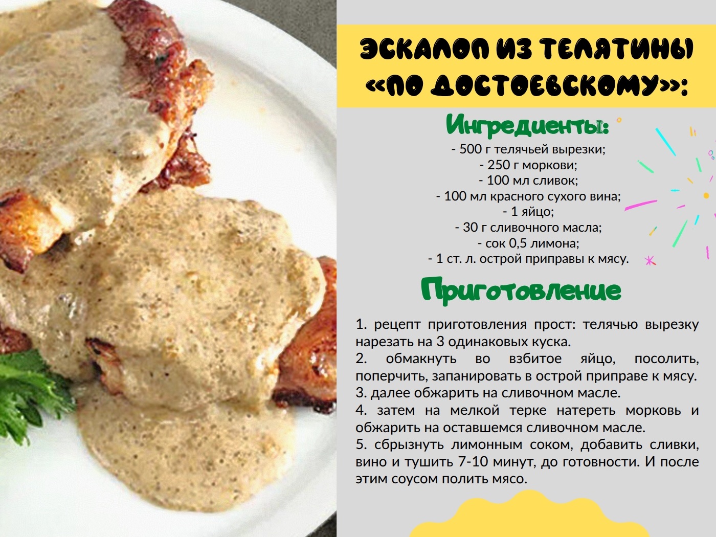 1. рецепт приготовления прост: телячью вырезку нарезать на 3 одинаковых куска.