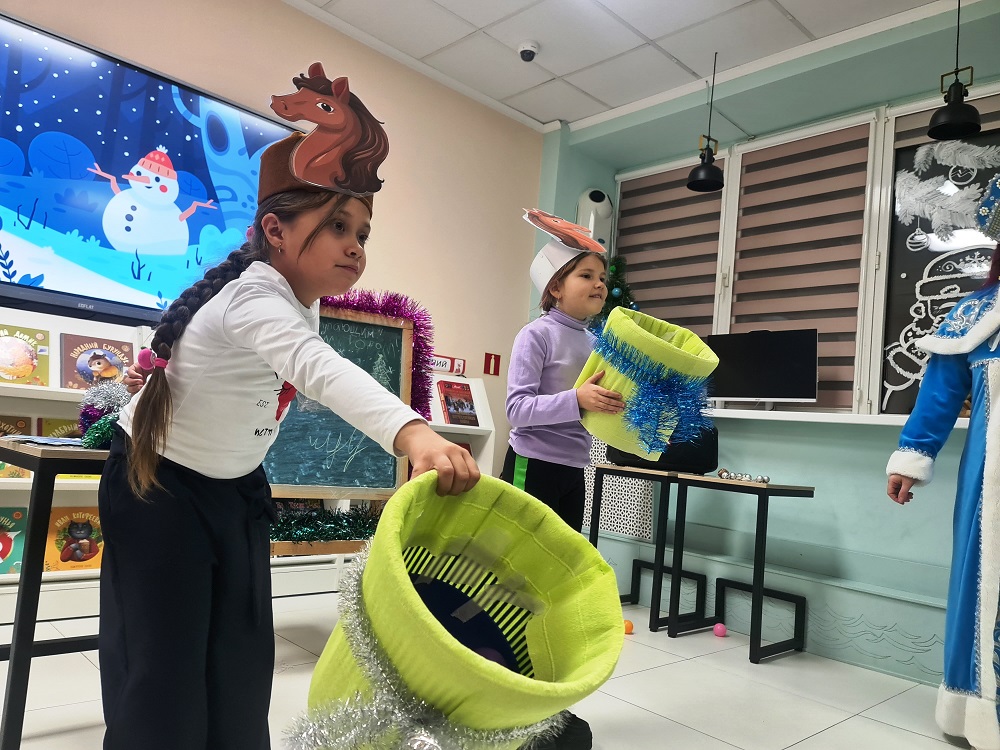 В Центральной детской библиотеке прошёл яркий цикл новогодних и рождественских мероприятий, подаривший ребятам атмосферу настоящего волшебства и незабываемых впечатлений. Открыла праздничную череду игровая программа «Новогодние чудеса». Юные гости отправились в сказочное приключение вместе с очаровательной Лошадкой и Снегурочкой. Главной задачей стало отыскать волшебную подкову – символ удачи наступающего года, которую случайно потеряла Лошадка. Дети с энтузиазмом включились в веселье: участвовали в эстафете добрых пожеланий, отплясывали задорные новогодние танцы, разгадывали загадки и отвечали на вопросы «И-го-го-викторины». Особый азарт вызвали активные игры «Передай подкову» и «Скачи за удачей». А тем, кто мечтал выступить перед Дедом Морозом, представилась возможность рассказать ему стихотворение – многие ребята с радостью воспользовались этим шансом. Не менее увлекательной оказалась викторина «Где родился Дед Мороз», которая стала настоящим испытанием для юных эрудитов. Мероприятие состояло из четырёх туров. В «Разморозьте букву» участники проявляли словесную ловкость, шаг за шагом раскрывая зашифрованные зимние послания в стиле телеигры «Поле чудес». Затем в туре «Симфония зимних чудес» ребята погрузились в мир знакомых мелодий и угадывали музыкальные композиции, пропитанные духом новогодних праздников. Третий этап – «Киновселенная Деда Мороза» – проверил, насколько хорошо подростки знакомы с экранными воплощениями волшебника: от классических мультфильмов до современных кинолент. Завершил викторину тур «Хроники Снежного царства», где участникам понадобились и память, и интуиция: они узнавали любопытные факты и малоизвестные детали из биографии Деда Мороза. Особой изюминкой цикла мероприятий стала игровая программа «Когда Дед Мороз был маленьким», где традиционное праздничное настроение причудливо переплелось с озорным духом XXI века. Вместе с Бабой-Ягой и Кикиморой дети с восторгом включились в весёлое приключение: зажигательно танцевали в стиле хип-хоп и брейк-данс, соревновались в командных играх «Наряди ёлочку» и «Замороженный танец», разгадывали загадки с подвохами. Кульминацией программы стало появление Деда Мороза. Вместе с ребятами он попытался «зажечь» огни на ёлке, а юные участники помогли зимнему волшебнику освоить новые формы веселья и почувствовать дух новогоднего обновления. Для учеников 8 – 10-х классов была организована «Лотерея зимних чудес» в формате лото. Каждый участник получил индивидуальную карточку, а ведущая доставала бочонки и объявляла цифры – под каждой скрывался вопрос на новогоднюю тематику. Школьники отвечали на вопросы об истории празднования Нового года, литературных произведениях, кинофильмах, песнях и традициях. Вопросы варьировались по сложности, побуждая ребят задействовать эрудицию и смекалку. Победителя определили по полностью заполненной карточке – им стал участник, который первым верно ответил на все выпавшие вопросы. Ученики 3-го класса попали в настоящую сказку на игровой программе «В царстве Снежной королевы». Их встретили Снежная королева и Снеговик, которые устроили для ребят череду забавных испытаний. Дети отгадывали зимние загадки, участвовали в эстафетах со снежками, выполняли задания на ловкость и смекалку. В итоге им удалось рас