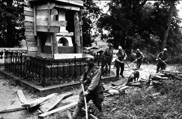 Еще в начале войны кинолог задалась целью воспитать собак-диверсантов, которые смогут оставлять взрывчатку под вражеской техникой. Но у такого способа борьбы был один несомненный минус – собака не выживет. Поэтому Дина Соломоновна искала способ выполнить боевую задачу, но при этом сохранить жизни своих подопечных. Ей это удалось: овчарка Дина сбросила «опасный груз» под эшелон врага и смогла спастись. Собаки, натренированные на взрывчатку, были полезны не только в борьбе с врагом на поле боя. Также специалистами были подготовлены животные, которые находили мины в самых труднодоступных местах. Одним из таких стала могила Александра Сергеевича Пушкина. Немцы изощренно заминировали захоронение великого русского поэта в его родном имении Михайловское, а дом-музей с находящимися рядом Никольской и Успенской церквями разграбили и сожгли. Памятник на могиле поэта обшили досками, якобы для сохранности, замаскировав там несколько противотанковых мин. Под самой могилой был вырыт тоннель длиной 20 метров, в него поместили фугасы и авиабомбы. При разминировании могилы и территории Михайловского был задействован 62 отдельный батальон собак-миноискателей.