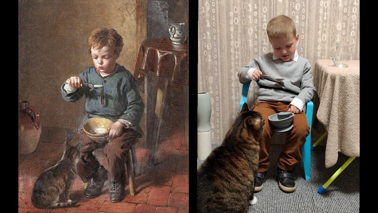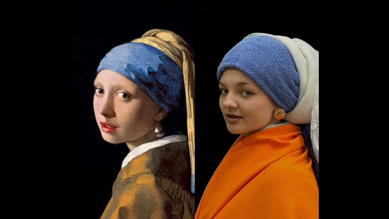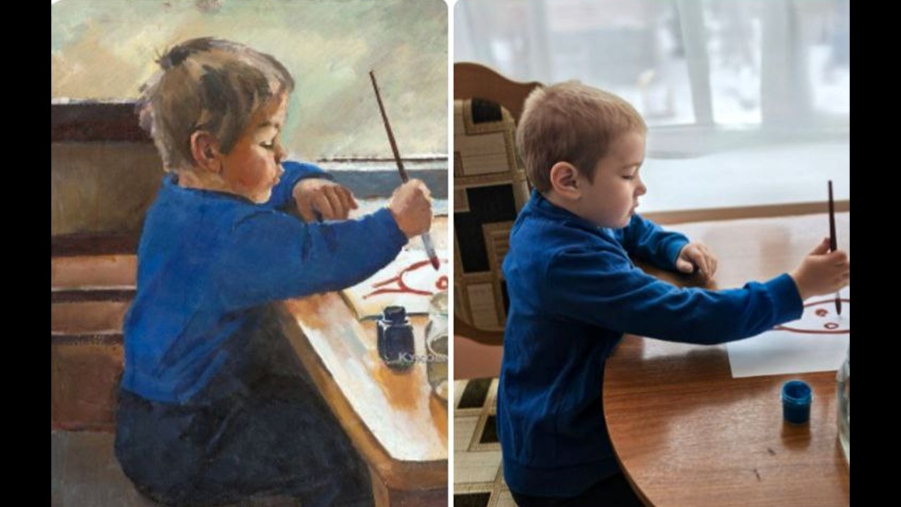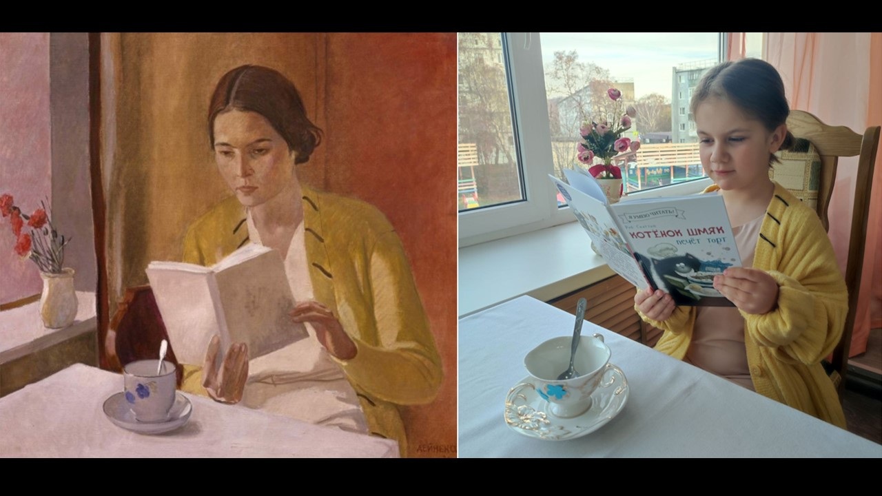 В рамках ежегодной всероссийской акции «Ночь искусств» в Центральной городской библиотеке впервые прошёл конкурс фотографий «ЗА РАМКИ». Суть конкурса заключалась в создании фото ремейков картин. Важное условие: на картине, по мотивам которой создавалась конкурсная работа, должны были присутствовать отсылки к тому или иному виду искусства (музыкальные инструменты – музыка, театральные маски – театр, книга – литература и пр.). Конкурс родился из флешмобов «Изоизоляция» и «Сфоткай типо Рембрандт», которые пользовались особенной популярностью во время пандемии. Люди воссоздавали шедевры живописи в домашних условиях, используя подручные средства. Конкурс активно поддержали жители Вилючинска. Всего было подано 36 заявок, а в создании работ участвовало свыше 50 человек. Среди авторов оказались представители разных поколений — от трёхлетних малышей до представителей «серебряного» возраста. Конкурсанты продемонстрировали поразительную фантазию и креативность. Жюри впечатлил высокий эстетический уровень фото-ремейков и та скрупулёзность, с которой некоторые участники подошли к созданию конкурсной работы. Выявление победителей заняло у членов жюри немало часов — споры велись горячо и основательно. В итоге они не ограничились распределением призовых мест, а учредили также ряд специальных номинаций, чтобы отметить яркие работы. Церемония награждения прошла 3 ноября на торжественном открытии «Ночи искусств» в Центральной городской библиотеке. Победители и призёры получили грамоты и памятные подарки. Также благодарственными письмами за активное участие в конкурсе были награждены педагоги МБУ ДО СК «Детская музыкальная школа № 1» и коллектив МБДОУ Детский сад № 9 «Теремок». Номинация «Семейное творчество»: