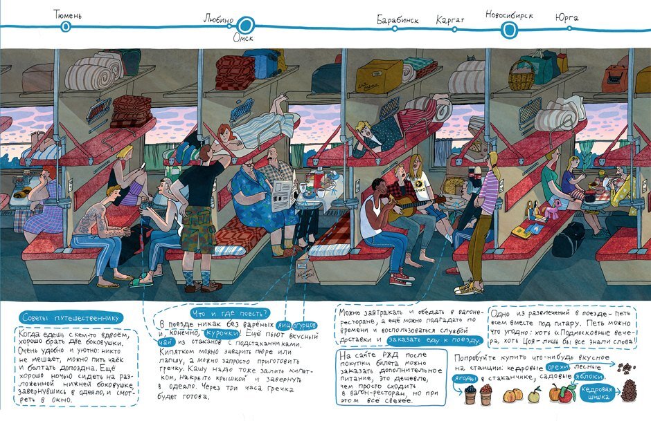 Предлагаем читателям открыть интерактивную карту, созданную по книге, и отправиться в путешествие по крупным городам-станциям на маршруте Москва – Владивосток. В путь, по Транссибу!