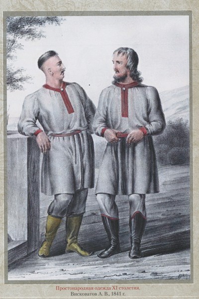 С течением времени рубахи становились короче, а разрезы у ворота смещались от центра левее, что привело к появлению характерного фасона косоворотки. К рубахе крепились запястья – украшения из жемчуга по низу рукавов, что добавляло наряду элегантности. Княжеские и боярские рубахи шились из тонких полотняных или шелковых тканей, в то время как у крестьян и ремесленников они были холщовыми.