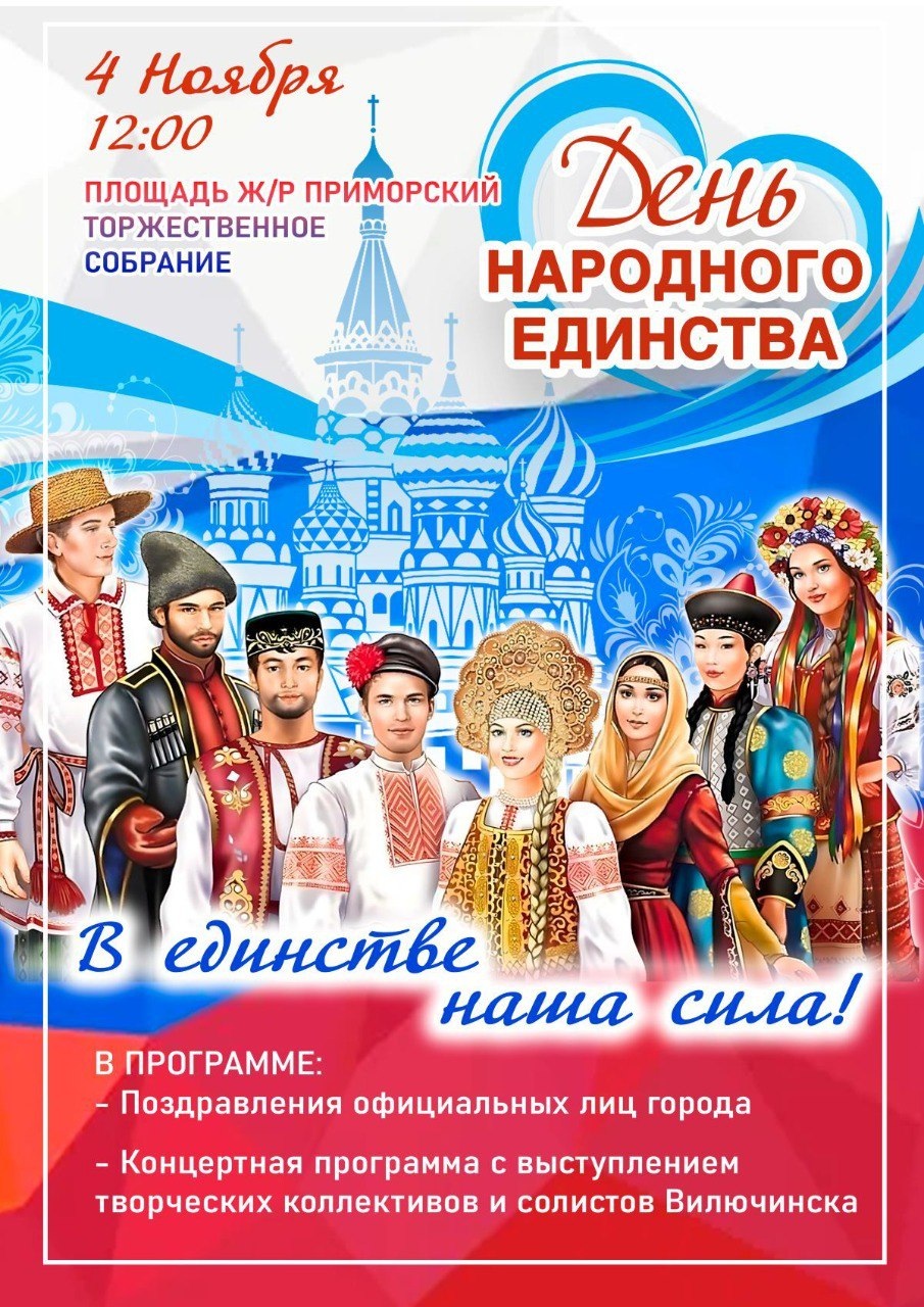 Жители Вилючинска тоже могут принять участие в праздничных мероприятиях, посвященных Дню народного единства.