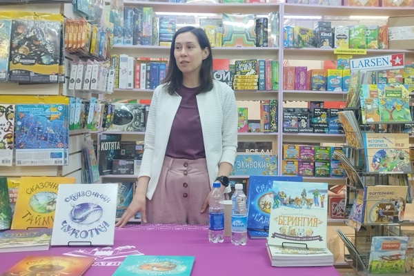 Сотрудники Централизованной библиотечной системы Мария Батова и Екатерина Мельник побывали на встрече с Александрой Агафоновой – автором уникальной книжной серии «Сказочные земли». Эти книги знакомят детей и взрослых с малоизвестными сказками разных регионов нашей страны. Серию, в которую на сегодняшний день входят уже девять книг, выпускает московское издательство «PressPass». Начало было положено книгой «Сказочная Камчатка». Александра рассказывает, что ей, коренной москвичке, всегда были интересны путешествия. Идея создания книг со сказками, которые откроют юным и взрослым читателям своеобразие и красоту разных регионов России, родилась во время путешествия на Камчатку. Покоряя Авачинский вулкан, будущий автор услышала, как кто-то из родителей рассказывает ребёнку корякскую сказку. Это послужило поводом начать собирать фольклор коренных народов Дальнего Востока. Примерно через год появилась «Сказочная Камчатка», следом – «Сказочная Якутия», «Сказочная Чукотка», «Сказочный Сахалин» и так далее. На встрече с читателями Александра Агафонова рассказала об экспедициях по отдалённым городам и сёлам, во время которых она знакомится со сказителями и собирает материалы для будущих книг. Процесс появления каждой новой книги занимает около года. Александра рассказала о том, какой это кропотливый труд, – не просто записать сказки, но и обработать их так, чтобы они были понятны и интересны современным детям и вместе с тем сохранили свою уникальность. Поделилась своим опытом взаимодействия с художниками-иллюстраторами: как почти десять лет назад объявила конкурс в социальной сети, а потом вместе с будущими читателями выбирала его победителя и макет обложки.
