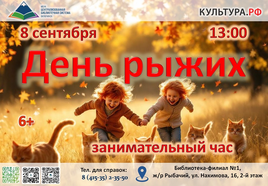 Приходите всей семьёй – будет познавательно, весело и ярко! Адрес библиотеки-филиала № 1: ул. Нахимова, 16, 2-й этаж. ☎ для справок: 8(415-35)2-35-50.