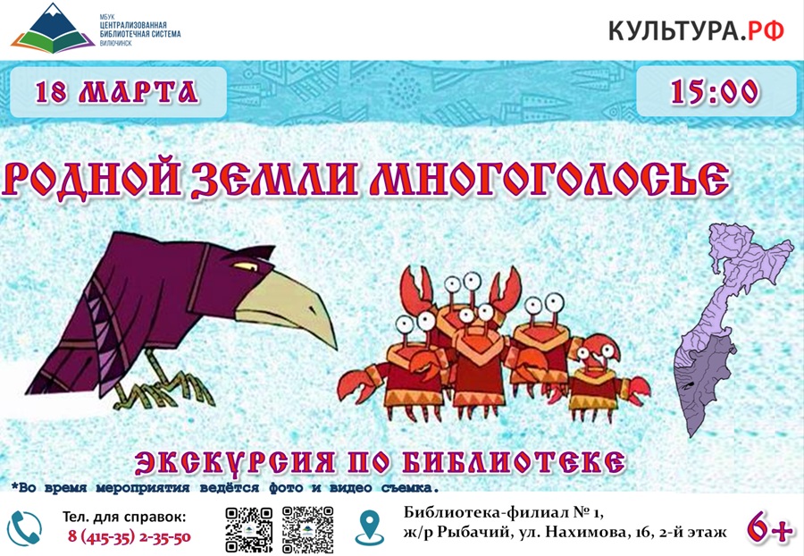 Мероприятие подойдёт для детей школьного возраста и их семей. Приходите всей семьёй – вместе мы откроем удивительные страницы истории и культуры нашей родины через мир книг. Ждём вас на экскурсии – давайте вместе услышим многоголосье родной земли в строках любимых книг. Адрес библиотеки-филиала № 1: ул. Нахимова, 16, 2-й этаж.