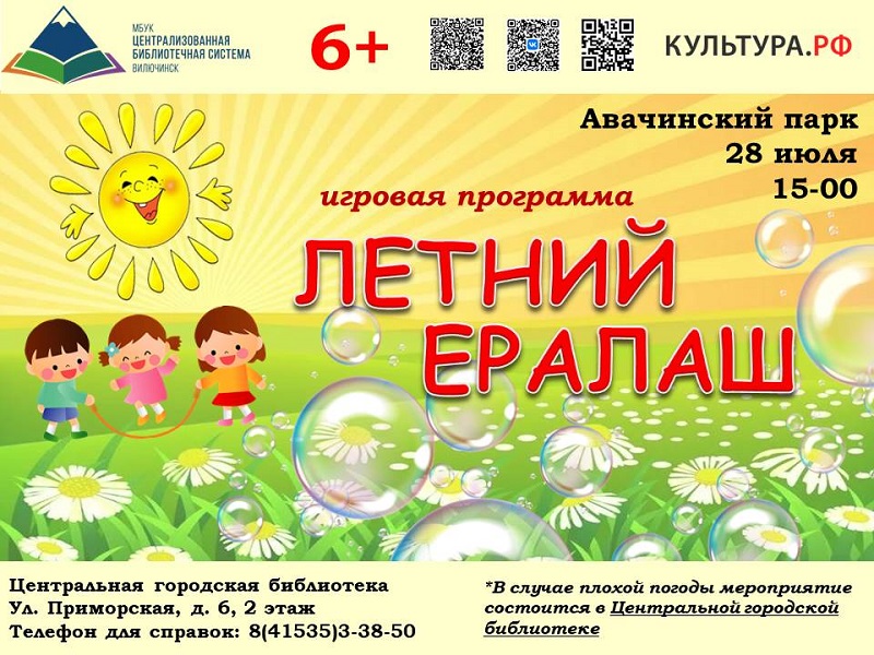 28 августа в 15:00 сотрудники Центральной городской библиотеки приглашают ребят от 6 лет принять участие в игровой программе «Летний ералаш». Вместе с библиотекарями ребята вспомнят самые яркие моменты Летнего читального зала 2025, весело проведут время и попрощаются с летом до следующего года. Вас ждут: уже полюбившиеся активности, приятная компания, забавные игры и конкурсы. «Летний ералаш» – это прекрасная возможность зарядиться позитивными эмоциями и сохранить тёплые воспоминания о любимом времени года, которые будут согревать холодными осенними вечерами. В финале победители получат призы от организаторов. Место сбора участников: ж/р Приморский, Авачинский парк у пирса. В случае плохой погоды мероприятие состоится в Центральной городской библиотеке по адресу: ул. Приморская, 6, 2-й этаж. ☎ для справок: 8 (415-35) 3-38-50.