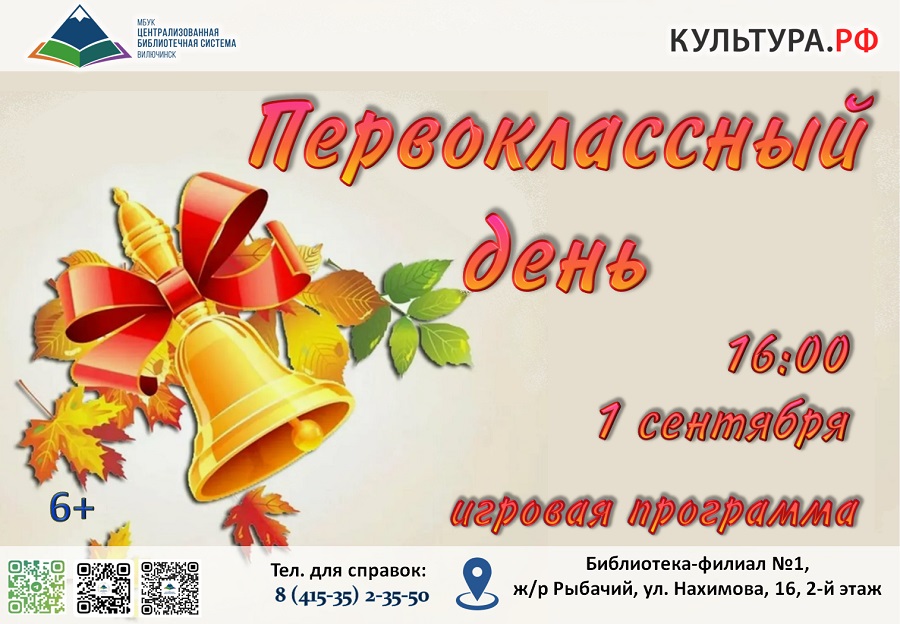 Мероприятие рассчитано на детей 6-10 лет и их родителей. Приходите всей семьёй, чтобы весело и с пользой отметить начало нового учебного года! Адрес библиотеки-филиала № 1: ул. Нахимова, 16, 2-й этаж. ☎ для справок: 8(415-35)2-35-50.