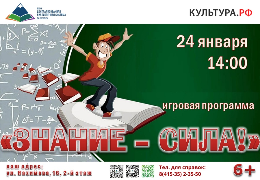 24 января в 16:00* библиотека-филиал № 1 приглашает всех желающих на игровую программу «Знание – сила!», посвящённую Дню студента. Студенческая жизнь – это не только бесконечные пары, зачёты и экзамены. Это ещё и неформальное общение, отдых и разные активности. О том, чем ещё занимаются современные студенты, расскажут сотрудники библиотеки, а также познакомят участников мероприятия с историей праздника; с Московским университетом, которому в 2025 году исполняется 270 лет, и другими любопытными фактами. Игры и развлечения, подготовленные ведущими, помогут молодым людям осознать неповторимость студенческой жизни и пробудит в них интерес к образовательному процессу, ведь вся жизнь – игра! Адрес библиотеки-филиала № 1: ул. Нахимова 16, 2 этаж. ☎ для справок: 8 (415-35) 2-35-50.