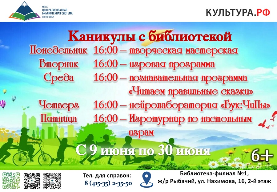 Адрес библиотеки-филиала № 1: ул. Нахимова, 16, 2-й этаж. ☎ для справок: 8 (415-35) 2-35-50.