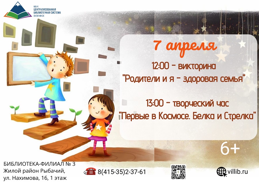 7 апреля в 12:00 и в 13:00 детская библиотека-филиал № 3 приглашает всех желающих принять участие в викторине «Родители и я – здоровая семья» и в творческом часе «Первые в Космосе. Белка и Стрелка». В ходе семейной викторины ведущие предложат проверить свои знания о здоровом образе жизни, правильном питании и физической активности. Викторина станет не только развлечением, но и отличным способом обсудить важные вопросы здоровья. Участие в мероприятии – это шанс узнать что-то новое, поделиться своим опытом и укрепить семейные узы, ведь командная работа и поддержка друг друга так важны для достижения общей цели – здоровой и счастливой семьи. Далее начнется творческий час «Первые в Космосе. Белка и Стрелка». Участники отправятся в захватывающее путешествие в мир космоса, чтобы узнать о смелых четвероногих космонавтах – Белке и Стрелке, которые проложили путь для первого полета человека в космос. Ребята познакомятся с историей подготовки к полету, узнают интересные факты о жизни животных в космосе и их важной роли в освоении космического пространства. После познавательной части юных участников ждет увлекательный творческий час, где они смогут создать своими руками поделку, посвященную первым космическим путешественникам. Адрес библиотеки-филиала № 3: ул. Нахимова, 16, 1 этаж.