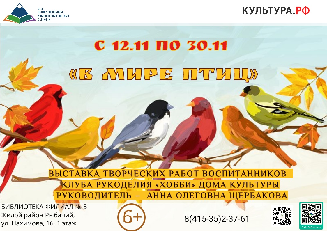 С 12 по 30 ноября в детской библиотеке-филиале № 3 представлена выставка «В мире птиц». В экспозиции можно увидеть работы воспитанников клуба рукоделия «Хобби» Дома культуры. Руководитель клуба – Анна Олеговна Щербакова. Представленные работы выполнены в волшебной технике кинусайга. Эта древняя японская техника позволяет создавать удивительные картины, запечатлевая красоту мира без кистей и красок – только ткань, терпение и мастерство. Каждое панно – это яркий образ пернатого друга и одновременно и напоминание о хрупкости природы, и призыв к нашей ответственности за тех, кто остается зимовать рядом. Адрес библиотеки-филиала № 3: ул. Нахимова, 16, 1-й этаж.