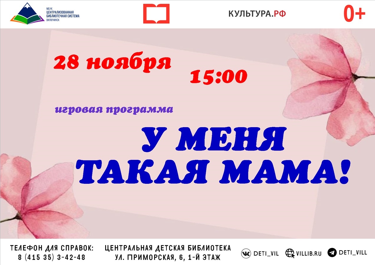 28 ноября в 15:00 в Центральной детской библиотеке состоится мероприятие, посвященное Дню матери. Гостей встретит выставка работ «Что рисуем маме», выполненных воспитанниками объединения «Волшебная шкатулка» Центра развития творчества детей и юношества. С вокальными композициями выступят воспитанники Детской музыкальной школы № 1. По доброй традиции, дети подарят поэтические поздравления. Особое настроение создадут юные танцоры – участники Народной студии спортивного бального танца «Антарес», которые выступят с ярким номером, чтобы движениями выразить то, для чего порой не хватает слов. Взрослые вместе с детьми примут участие в активных и интеллектуальных играх: «Интуиция», «Киномама», «Караоке», «Поцелуй для мамы», «Коллективный портрет» и других – каждая игра подарит участникам радость совместного времяпровождения. Программу дополнит беспроигрышная лотерея. Адрес Центральной детской библиотеки: ул. Приморская, 6, 1-й этаж. Актуальная программа мероприятий библиотек города доступна в разделе «Афиши» | |