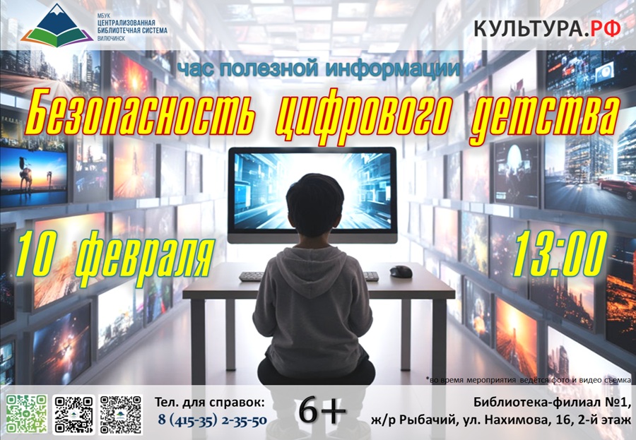 10 февраля в 13:00 в библиотеке-филиале № 1 пройдёт познавательный час «Безопасность цифрового детства».