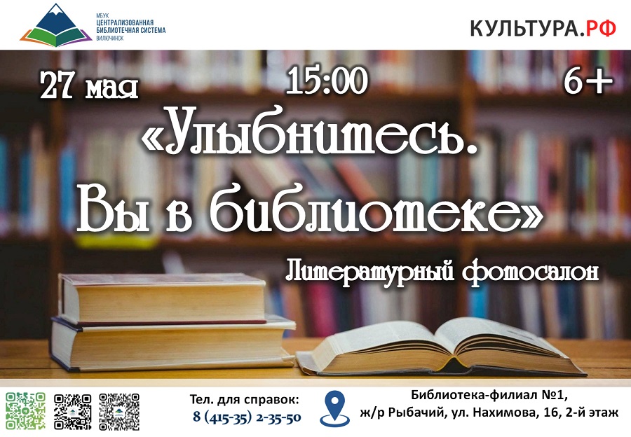27 мая в 15:00 библиотека-филиал № 1 приглашает детей, подростков, жителей и гостей города на день открытых дверей. Сотрудники расскажут об истории библиотеки, познакомят гостей с книжным фондом, покажут книжные выставки и новинки. Также посетителей ждут викторины и головоломки, игровая программа, возможность попробовать себя в роли библиотекаря или примерить образ одного из литературных героев. Мероприятие предоставит возможность узнать больше о библиотеке, открыть для себя новые книги и провести время в уютной атмосфере. Адрес библиотеки-филиала № 1: ул. Нахимова, 16, 2 этаж. ☎ для справок: 8 (415-35) 2-35-50.