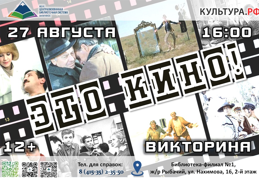 Приходите всей семьёй – это отличная возможность провести время вместе, погрузиться в мир кинематографа и узнать что-то новое друг о друге. Адрес библиотеки-филиала № 1: ул. Нахимова, 16, 2-й этаж. ☎ для справок: 8(415-35)2-35-50.