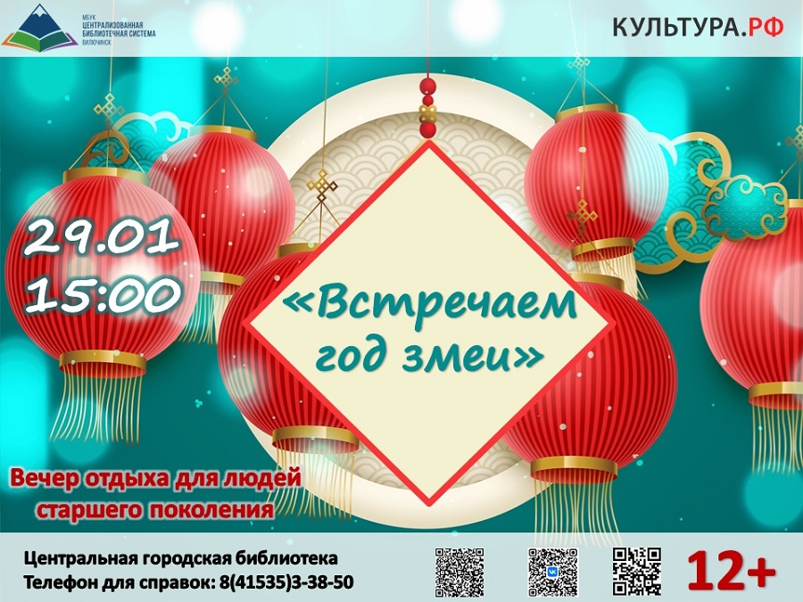 29 января в 15:00 сотрудники Центральной городской библиотеки приглашают жителей города на вечер отдыха, посвященный празднованию Нового года в разных странах мира. Прекрасный зимний праздник окружён смехом, весельем, мечтами о будущем, волшебством и загадкой. У разных народов сложились свои традиции празднования Нового года. Гости примут участие в играх, конкурсах, вспомнят весёлые песни и познакомятся с иностранными «коллегам» Деда Мороза. Отдельно ведущие расскажут, что следует ожидать от года Зелёной Деревянной Змеи, который, по восточному календарю, вступит в свои права именно 29 января. Адрес Центральной городской библиотеки: ул. Приморская, 6, 2 этаж. ☎ для справок: 8(415-35)3-38-50.