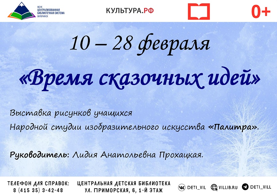 С 10 по 28 февраля в Центральной детской библиотеке проходит выставка творческих работ воспитанников Народной студии изобразительного искусства «Палитра». В экспозиции представлены работы, выполненные акварелью с прорисовкой образа серебряным и золотым контурами. Для создания рисунков применялись смешанные техники: живопись акварелью «по-сырому», когда краска наносится на обильно смоченную водой бумагу, и «по-сухому», предполагающей нанесение нескольких слоев краски на сухой лист бумаги. Рисунки передают, как юные художники видят зиму, традиции празднования Нового года и рождественские развлечения. Выставку можно посетить в часы работы учреждения. Адрес Центральной детской библиотеки: ул. Приморская, 6, 1-й этаж. ☎ для справок: 8(415-35)3-42-48.
