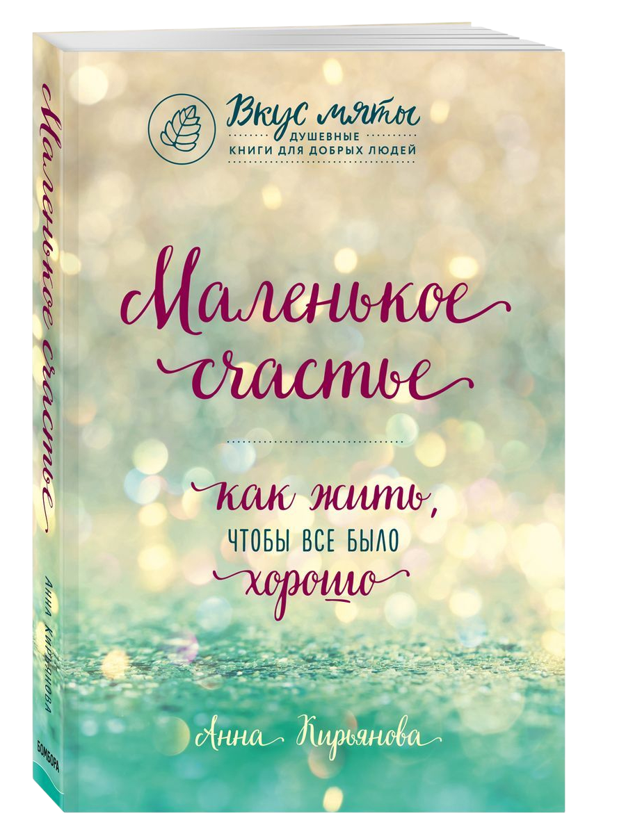 Кирьянова, А. В. Маленькое счастье. Как жить, чтобы все было хорошо : [рассказы : 16+] / Анна Кирьянова ; [предисловие автора]. – Москва : Эксмо, Бомбора, 2023. – 414, [2] с. ; 21 см. – (Вкус мяты. Душевные книги для добрых людей). «Жизнь – это просто жизнь. Она и учит, и лечит, и дает силы. Как, надеюсь, и эта книга простых жизненных рассказов и наблюдений». (Из предисловия автора). Истории, которые вошли в эту книгу, объединены по разделам «Любовь», «Добро» и «Счастье». Простыми словами, не углубляясь в дебри психологии и философии, автор ведет душевный разговор с читателем. Приводит примеры из жизни обычных людей и знаменитостей: Бунина, Чехова, Агаты Кристи, Сальвадора Дали, Опры Уинфри и других. Как и предыдущий сборник, эту книгу можно открывать и читать с любого места – следуя философии, что «случайности не случайны», вы почти наверняка получите полезный совет или ободряющие слова именно тогда, когда особенно в них нуждаетесь. Возможно, кому-то истории Анны Кирьяновой покажутся слишком простыми и незатейливыми. Но автор делится ими как раз потому, что счастье состоит из мелочей. Добрых слов и поддержки. Напоминаний о забытом шарфе, семейных традициях, прогулок по ночам, детских рисунков, вкусных котлет и чая с земляничным вареньем. «И девочка задирала голову и радостно смотрела на небо. И на снежинки. Это и есть радость жизни. Вот она самая и есть. В сырой и холодный день радоваться тому, что с неба падают снежинки».