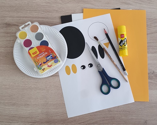 – цветной картон чёрного и белого цветов, либо распечатаный шаблон в цветном варианте;