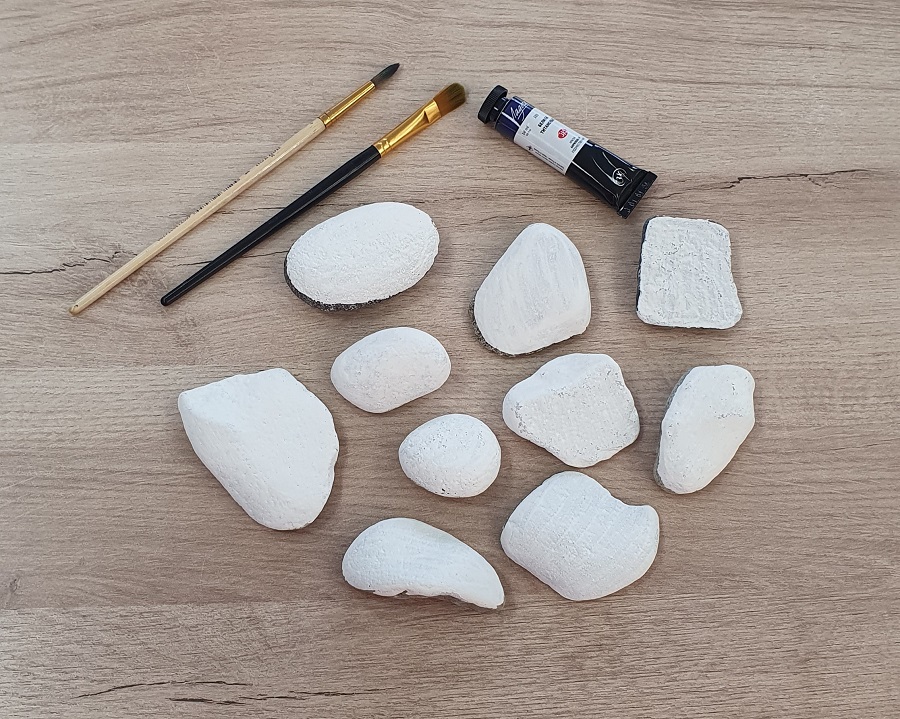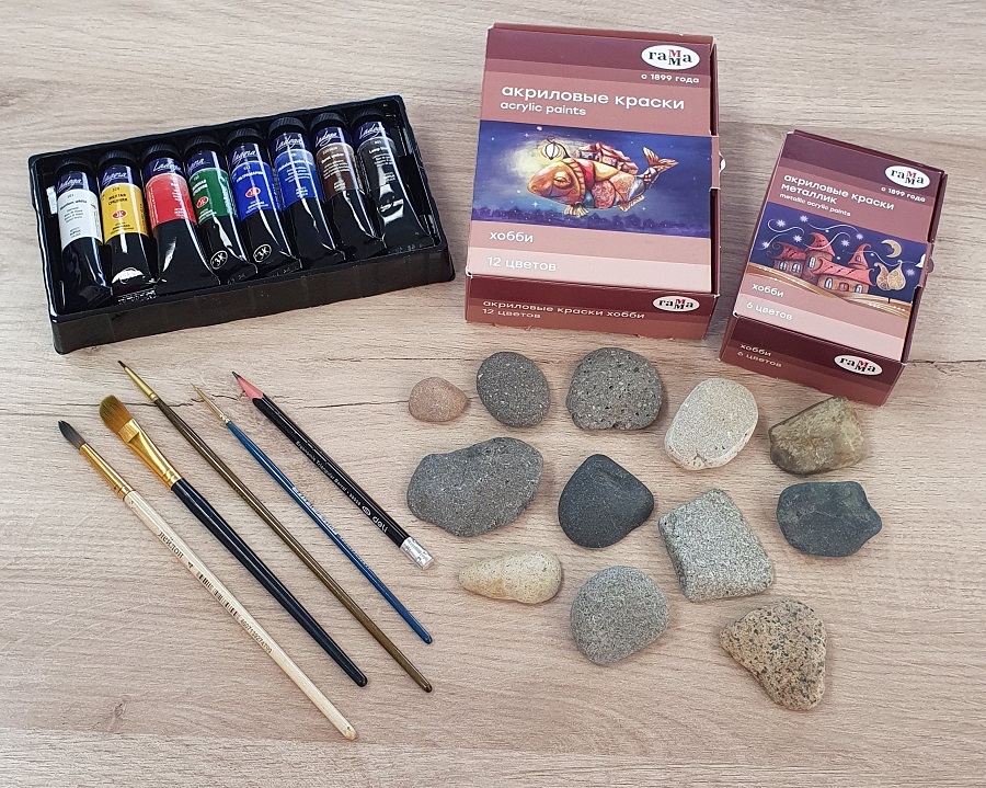 – морские камни различного размера с гладкой поверхностью; – акриловый грунт; – акриловые краски; – кисти; – простой карандаш; – хорошее настроение и ваша фантазия.
