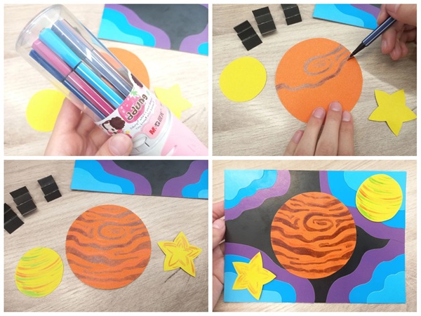 18. Берём цветные фломастеры или карандаши. Добавляем деталей планетам.